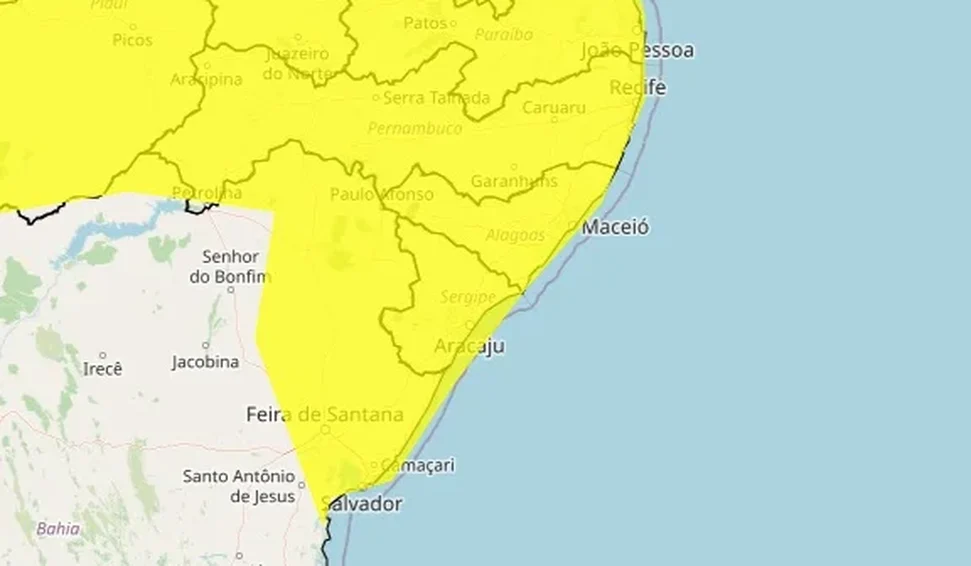 O Instituto Nacional de Meteorologia (Inmet) emitiu, nesta sexta-feira (3), um novo alerta amarelo de "perigo potencial" para chuvas intensas em todo o território de Alagoas. O aviso meteorológico passa a vigorar na madrugada deste sábado (4) e se estende até o final da noite de segunda-feira (6).
