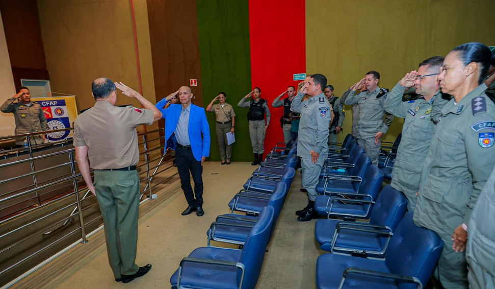 Além do comandante-geral e do veterano homenageado, com posto a mesa de honra o tenente-coronel F. Soares, comandante do Policiamento da Região Sul (CPRSul); o tenente-coronel Antônio Umbelino, subdiretor do DEIP; e o comandante do CFAP, major Daniel Valões.