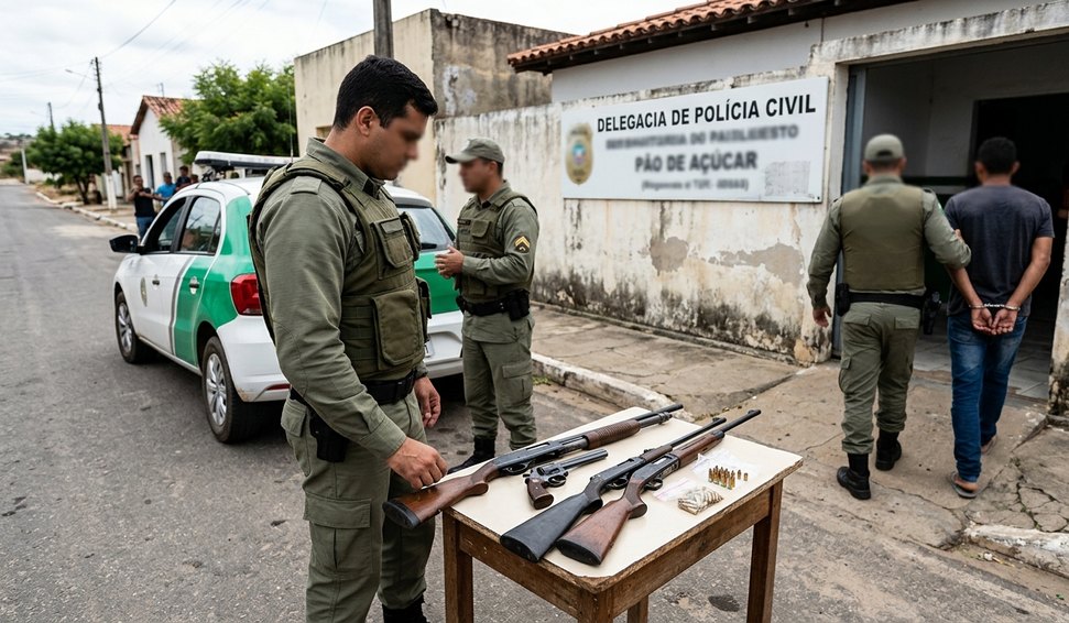 Um homem acusado de violência doméstica foi preso pela Polícia Militar após ser flagrado com quatro armas de fogo em sua residência, nesta sexta-feira (10), no município de Pão de Açúcar. A ação ocorreu em cumprimento a um mandato de busca e apreensão expedida pelo 2º Juizado de Violência Doméstica e Familiar contra a Mulher da Capital.