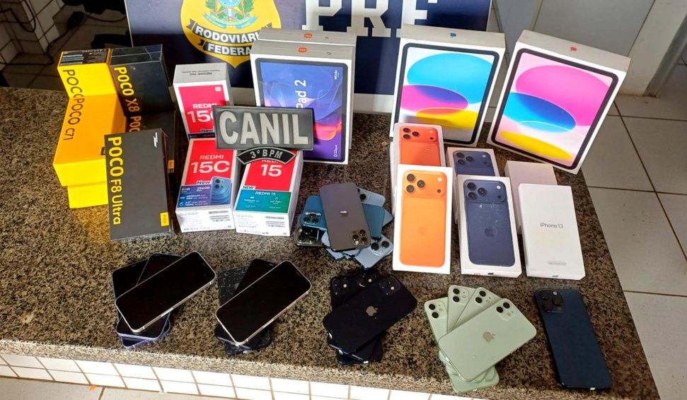 Entre os itens apreendidos estavam 36 aparelhos, incluindo smartphones e tablets de diversas marcas, além de seis dispositivos aparentemente recondicionados. Também foram encontrados 48 itens entre fones de ouvido e microfones, além de centenas de peças como filmes protetores de tela e traseiros para diversos modelos. Todo o material foi contabilizado e encaminhado à Receita Federal pela equipe da PRF.
