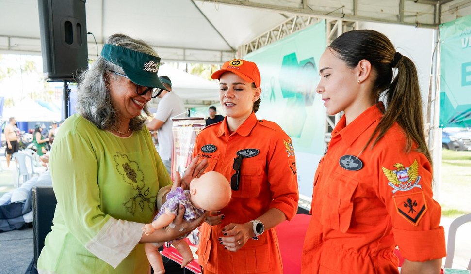 A soldado Spinelli, responsável por orientar o público sobre técnicas de desengasgo, ressaltou a importância da disseminação de informações para a prevenção de acidentes.