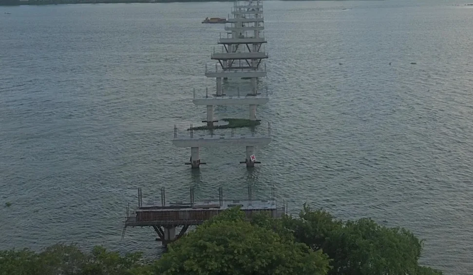 A ponte terá 1.180 metros de extensão (1,18 km), com 18 metros de largura. O vão central contará com 150 metros, e altura de 30 metros no trecho navegável. Com 50% de execução, a obra já avançou para uma etapa estratégica com a instalação das primeiras vigas da superestrutura.