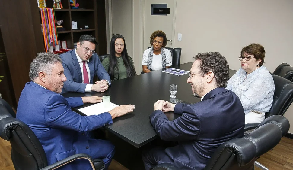 A reunião com o novo integrante ocorreu no TJAL, nesta quinta (16). Também participaram representantes da Vara de Execuções Penais, da Secretaria de Ressocialização (Seris) e do programa Fazendo Justiça, do CNJ.