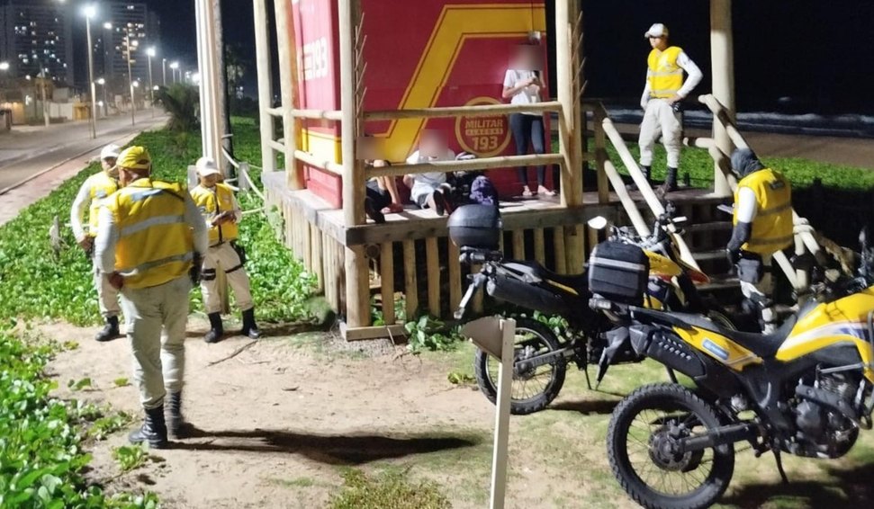 O grupo foi visto subindo as escadarias do posto de guarda-vidas do Corpo de Bombeiros, localizado na orla do bairro, que já estava fechado. A atitude suspeita motivou a aproximação da equipe. Os dois homens inicialmente resistiram à abordagem, mas foram contidos pelos agentes.