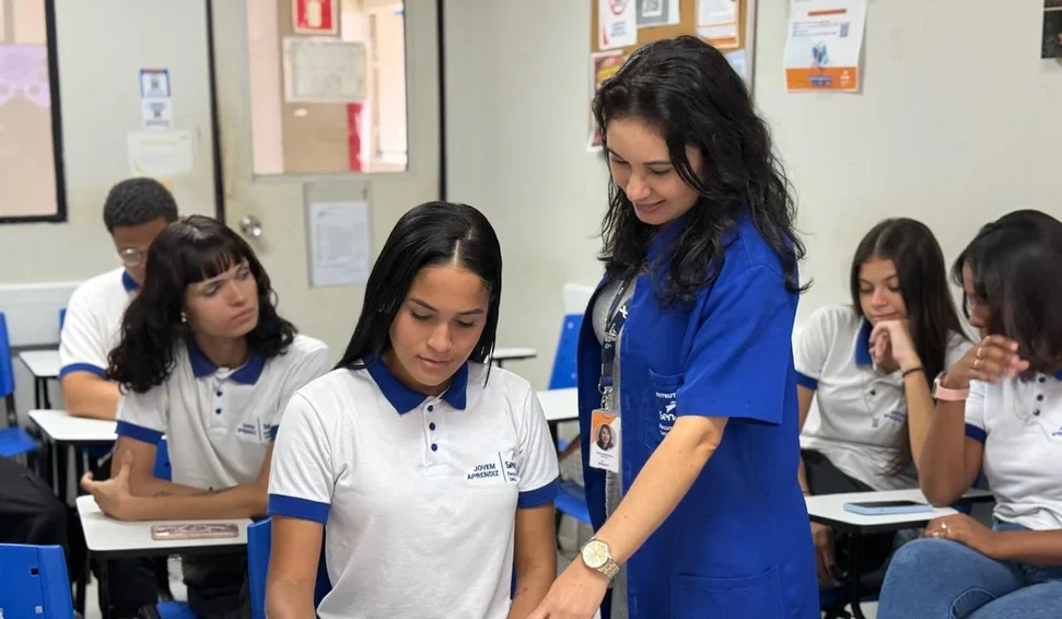 Para a instrutora Annyscléa Faria, que acompanha Camile, esse é o principal papel da aprendizagem: preparar para o que vem depois. “Eles chegam muito tímidos, muito ‘verdinhos’, mas com o tempo vão se desenvolvendo. A gente trabalha muito com dinâmicas, apresentações e metodologias como a sala de aula invertida, o que faz com que eles ganhem confiança, aprendam a se comunicar e consigam se posicionar melhor. É um crescimento muito claro”, explica.