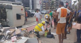Ronda no Bairro presta primeiros socorros a motorista após tombamento de caminhão na Ponta Verde