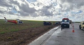 Equipe do DEA e helicóptero Falcão 05 atuam no socorro a vítimas presas às ferragens na zona rural do município