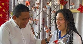 Edneide Silva Fernandes, do 3º ano, recebe prêmio entregue por ex-aluno e atual secretário de Estado, Júlio Cézar.
