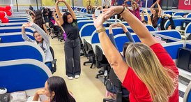 Atendentes de telemarketing realizaram exercícios físicos curtos e específicos para prevenir doenças ocupacionais e fortalecer a musculatura
