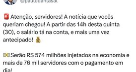Pagamento dos servidores estaduais foi antecipado para esta quinta-feira (30), beneficiando mais de 76 mil trabalhadores em todo o estado