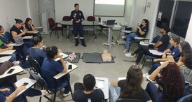 Estudantes do 8º período conheceram a estrutura do Samu, participaram de atividades práticas e discutiram legislação do atendimento pré-hospitalar.