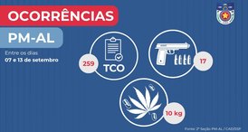 PM apreende 17 armas de fogo e mais de 10 kg de drogas em uma semana em Alagoas