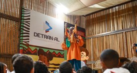 Estande do Detran Alagoas promove atividades lúdicas e educativas para todas as idades, reforçando a importância da segurança viária durante o evento literário