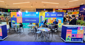 Em estande do banco disponível no evento, clientes podem obter informações sobre financiamento e consultar as ofertas de imóveis