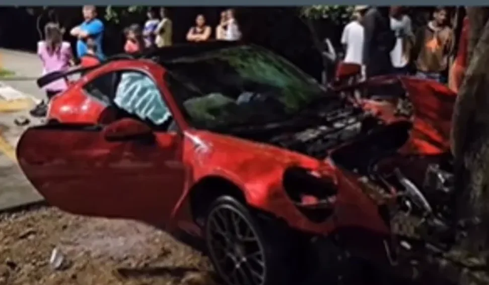 Porsche desgovernado bate em árvore e causa alvoroço em Arapiraca