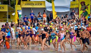 Na prova de Maratona Aquática principal, a mais longa com 4 km, o alagoano Lucas Nobre foi o campeão junto com a também atleta alagoana Patrícia da Silva Lima Chagas.