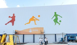 O espaço também contará com ambientes funcionais, a exemplo de áreas de apoio, administração, sala de professores, vestiários, copa, depósito e quadras, oferecendo um espaço completo e eficiente para a prática de esportes e atividades físicas.