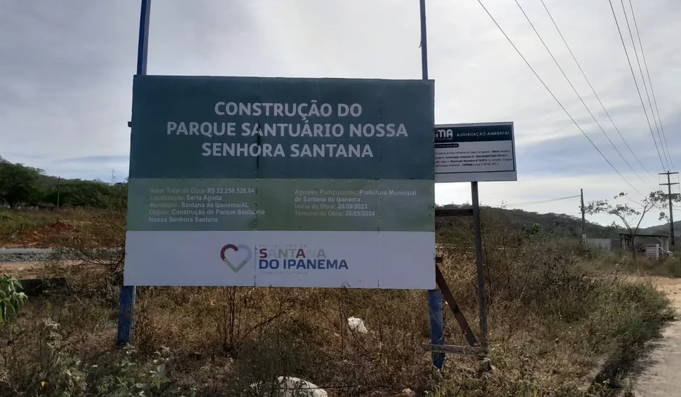 A promessa de transformar Santana do Ipanema em um novo polo de turismo religioso deu lugar a um cenário de abandono e incerteza. A construção do Parque Santuário Nossa Senhora Santana, localizada na Serra Aguda, está totalmente paralisada, embora o cronograma oficial indicasse que a obra deveria ter sido concluída há mais de um ano.