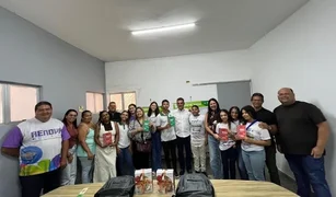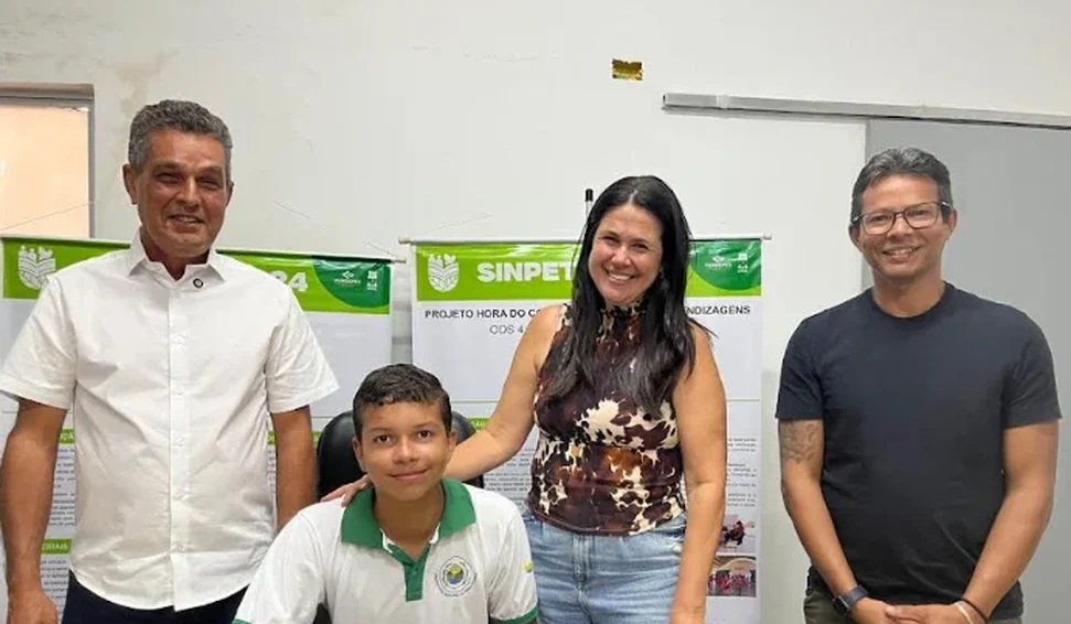 Nesta terça-feira (11), em seu gabinete, o prefeito de Branquinha, Neno Freitas e a primeira-dama, Renata, recepcionaram os estudantes premiados na edição 2024 da Semana Institucional de Pesquisa, Tecnologia e Inovação na Educação Básica, e que tiveram seus livros publicados pela Coleção SINPETE, que celebra a ciência feita nas escolas com o tema "Ciência na Escola para o Desenvolvimento Sustentável". Das 30 obras da coletânea, duas são de autoria dos alunos da rede municipal.