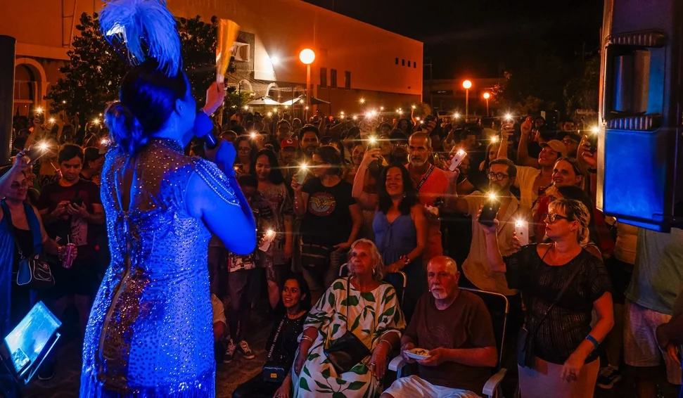 É muita cena: Ivana Iza celebra 30 anos de carreira com festa aberta ao público em frente ao Theatro Homerinho