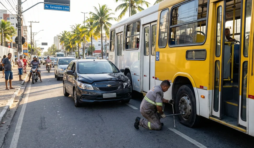 Batida entre carro e ônibus causa lentidão no trânsito da Ponta Verde, em Maceió