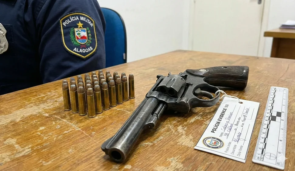 De acordo com a PM, ao chegarem ao endereço, os policiais deram início à busca domiciliar. Durante a varredura, foi encontrado um revólver calibre .38, acompanhado de 35 munições intactas. O morador da residência assumiu a posse do armamento.