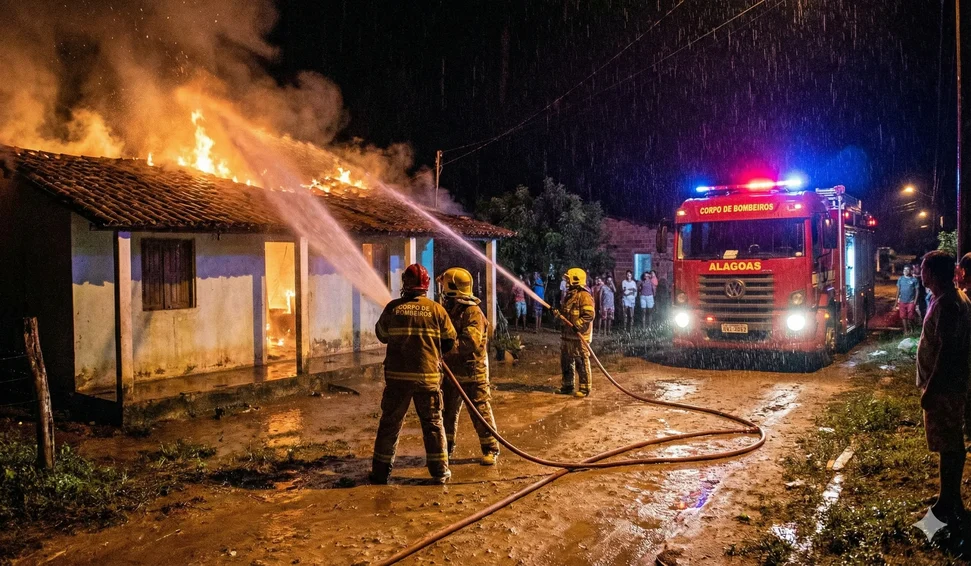 Incêndio de médias proporções atinge residência na Vila Bananeiras em Arapiraca e mobiliza Bombeiros