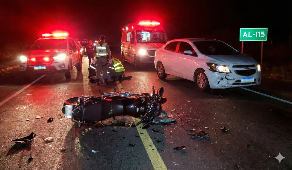 Colisão entre carro e moto na AL-115 deixa homem de 32 anos ferido nesta madrugada