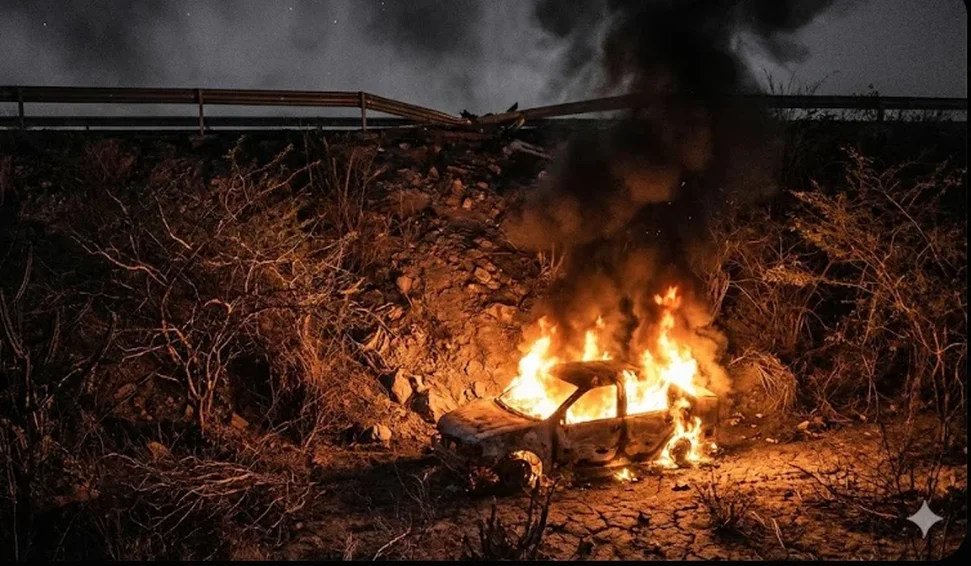Milagre na AL-220: motorista escapa de carro em chamas após cair em ribanceira no trevo de Olivença