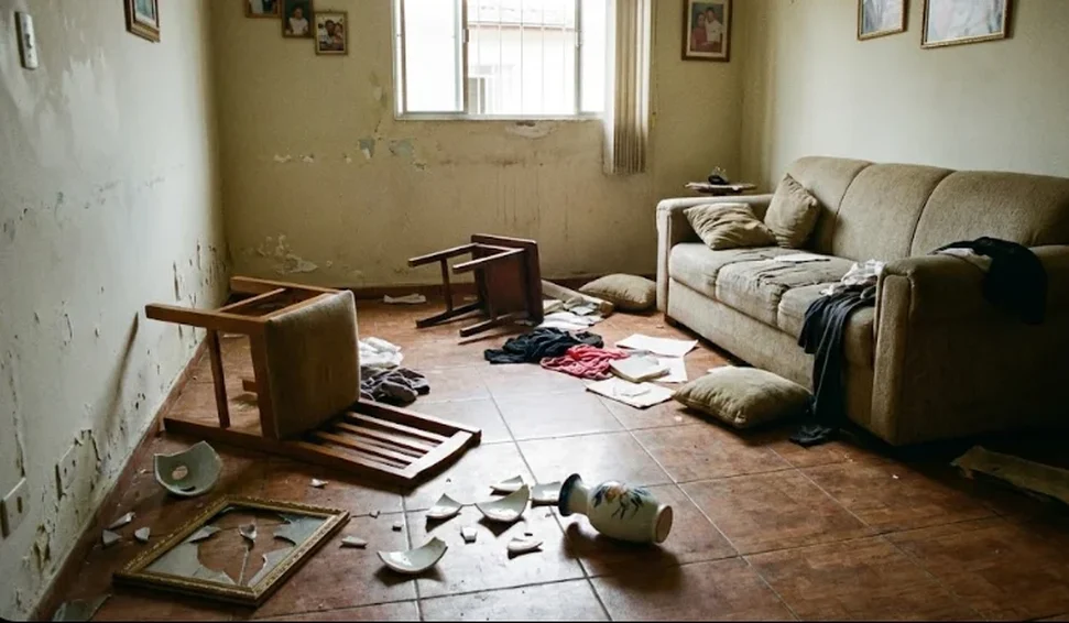 A guarnição do 8º Batalhão foi acionada e encontrou um cenário de destruição. O suspeito, visivelmente alterado (possivelmente sob efeito de álcool e entorpecentes), estava quebrando objetos e agindo com extrema agressividade.