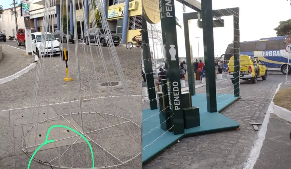 Imagens registradas no local mostram técnicos realizando vistoria e identificando cabos partidos em pontos estratégicos da cidade, como a Praça Doze de Abril, a Praça Jácome Calheiros e a Avenida Floriano Peixoto. Os danos indicam intervenção criminosa direta na rede elétrica responsável por alimentar os elementos decorativos do Natal, em uma área que concentrava estrutura técnica montada para o evento com trio elétrico.