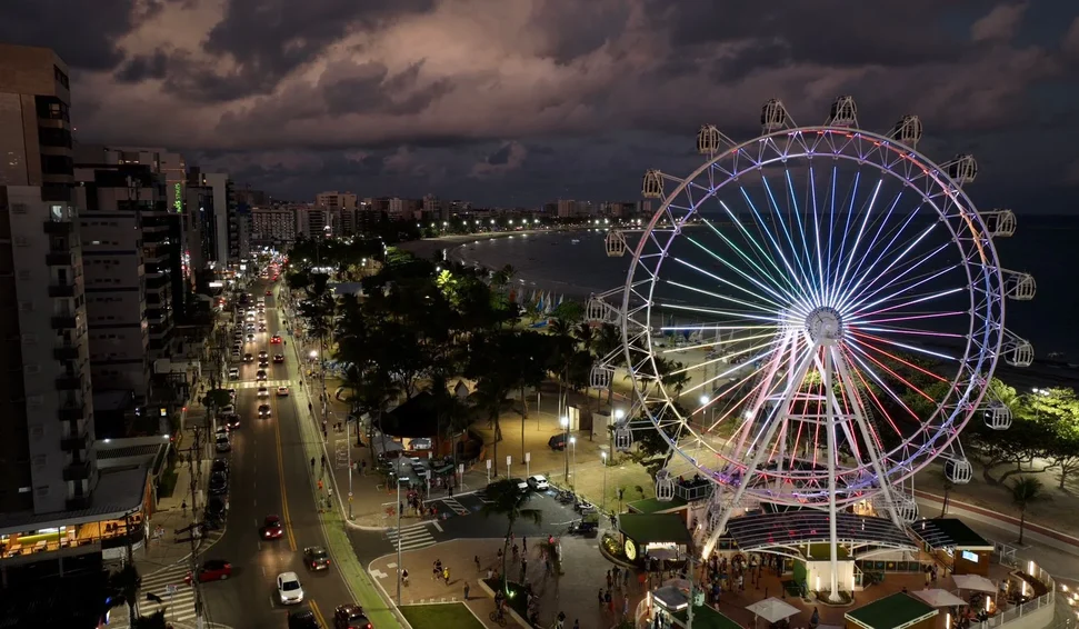 E quem embarca na Roda em dezembro tem um privilégio extra: ver Maceió decorada para o Natal lá do alto, com o brilho das luzes refletindo no mar e deixando a paisagem ainda mais encantadora. E para quem escolhe celebrar a virada, a experiência ganha um toque especial: no dia 31 de dezembro, a Roda Maceió realizará a contagem regressiva para o Ano Novo por meio de projeção em sua própria estrutura, transformando a atração em um grande relógio luminoso à beira-mar.