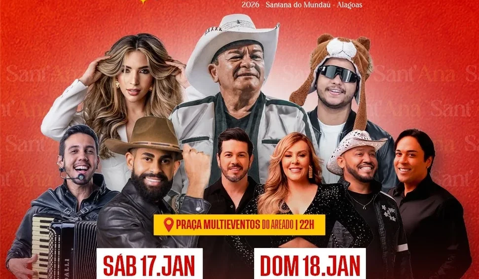 Entre os dias 9 e 18 de janeiro, o município de Santana do Mundaú celebra a sua padroeira, Senhora Sant’Ana. Paralelo aos festejos religiosos, a prefeitura acaba de anunciar a programação artística que fará a alegria dos mundauenses e visitantes nos dias 17 e 18.