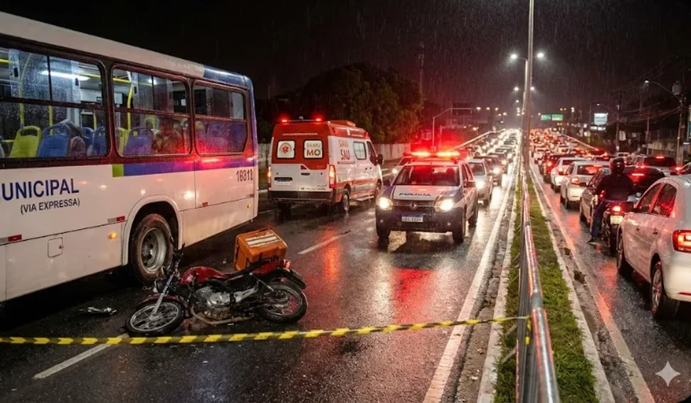 Tragédia na Via Expressa: entregadora por aplicativo morre ao colidir com ônibus na véspera do Réveillon