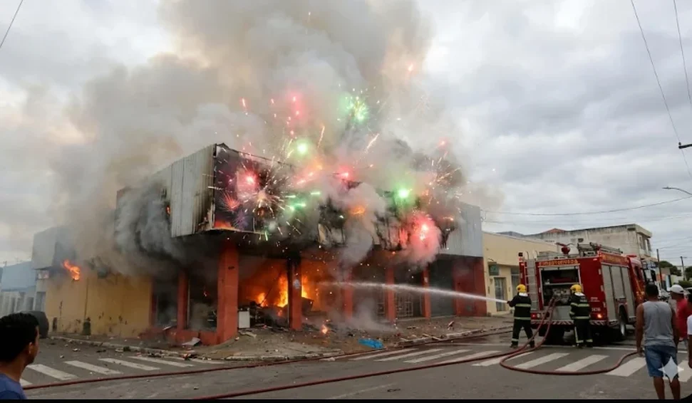 Pânico e explosões: incêndio destrói loja de fogos de artifício na Avenida Rio Branco, em Arapiraca