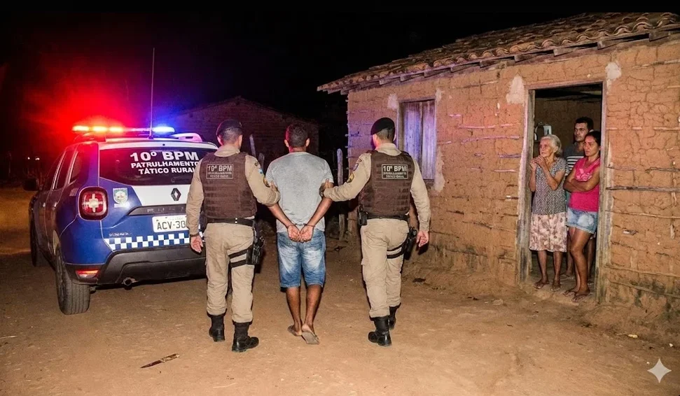 Uma noite de medo na zona rural de Estrela de Alagoas terminou com a prisão de um jovem de 25 anos, identificado pelas iniciais M.S.S., na quinta-feira (8). Ele é acusado de ameaçar de morte a própria mãe e o padrasto, além de tentar extorquir a avó.