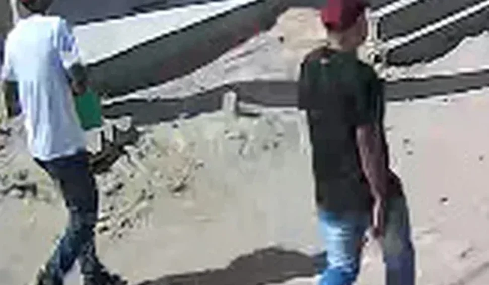 As imagens mostram a dupla caminhando tranquilamente por uma rua do bairro por volta das 14h25. Ao avistarem o motociclista vindo na direção contrária, eles mudam de postura e iniciam a abordagem. Um dos criminosos saca uma arma de fogo e parte para cima das vítimas com gritos e ameaças explícitas.