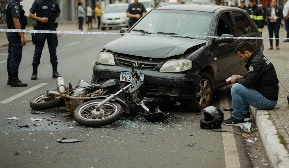 Colisão no Centro: motociclista fica ferido após bater em carro na Rua Marechal Deodoro, em Arapiraca