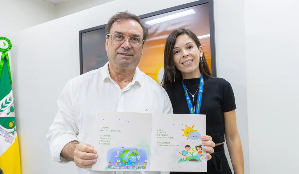 No encontro, a educadora entregou ao gestor arapiraquense um exemplar do livro "O mundinho e a magia de cuidar- educação ambiental para crianças".