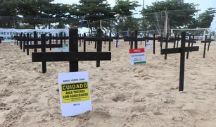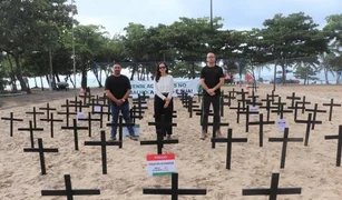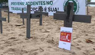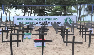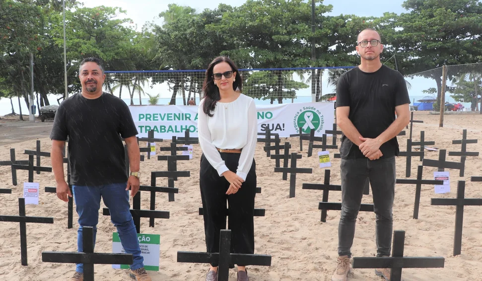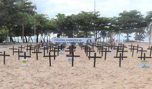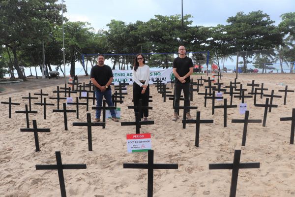 Mais de cem cruzes foram colocadas na Praia de Pajuçara em memória das vítimas de acidente de trabalho; MPT esteve presente