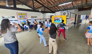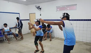 O primeiro encontro foi realizado na Escola Municipal Antidio Vieira (Trapiche), onde os alunos tiveram a oportunidade de experimentar plataformas como realidade virtual (meta quest 3), jogos esportivos em consoles (PlayStation 5), jogos de movimento (just dance) e até jogos de raciocínio lógico e cooperação através de computadores pró-players.