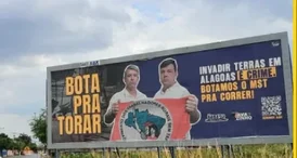 Outdoor com críticas ao MST e imagens de políticos do PL chama atenção em avenida de Arapiraca