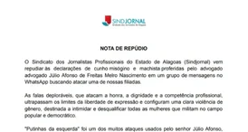 Sindjornal repudia ataques misóginos de advogado contra jornalista e aciona OAB-AL