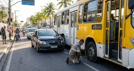 Batida entre carro e ônibus causa lentidão no trânsito da Ponta Verde, em Maceió