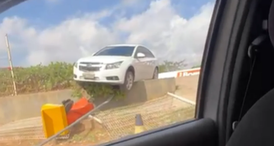 Carro fica "pendurado" em mureta após acidente na AL-115, em Arapiraca