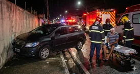 Acidente na Avenida Novo Nordeste mobilizou Corpo de Bombeiros na madrugada desta segunda (8); vítima sofreu lesões no rosto e foi hospitalizada
