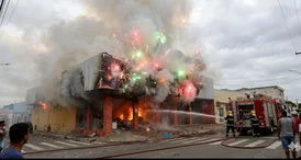 Pânico e explosões: incêndio destrói loja de fogos de artifício na Avenida Rio Branco, em Arapiraca