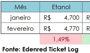 Gasolina tem leve queda, enquanto etanol fica mais caro em fevereiro, aponta Edenred Ticket Log