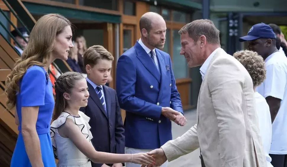 O príncipe herdeiro do Reino Unido, William, e sua esposa, Kate, estão a postos neste domingo (13) no camarote real em All England Club, em Londres, para prestigiar a final masculina do torneio de tênis de Wimbledon, entre o italiano Jannik Sinner e o espanhol Carlos Alcaraz.