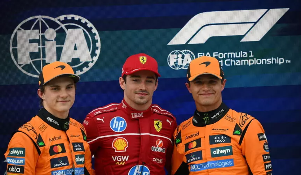 O piloto monegasco dividirá a primeira fila no domingo (3) com Oscar Piastri, da McLaren. Lando Norris, também da McLaren, largará da segunda fila ao lado do compatriota britânico George Russell, que terminou em quarto pela Mercedes.